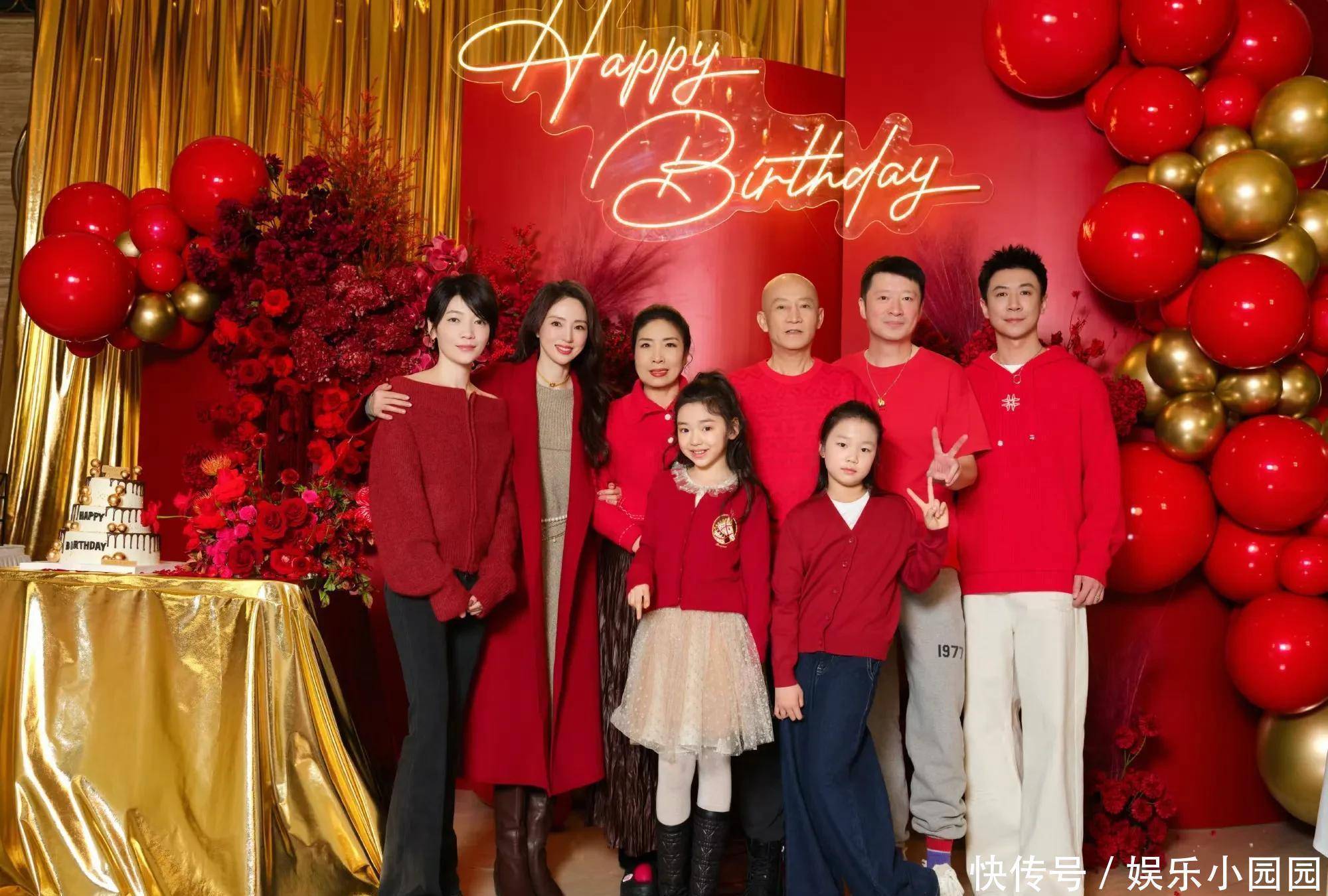 在全家人的大合影里,董璇特意穿上了红大衣,出镜的人清一色的红色着装。小酒窝穿着红色蓬蓬裙站在C位,张维伊和岳父岳母的衣服颜色一模一样。